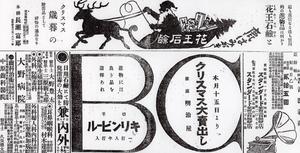 | 普及期(明治後期〜昭和初期) | アメリカで誕生した現代とほぼ同じサンタクロース像が雑誌・新聞広告等を通じて流入。1900〜1930年代にかけて、三越や大丸などの百貨店がサンタを積極的にクリスマスキャラクターとして採用し、都市部を中心に広く知られる存在となる。 |