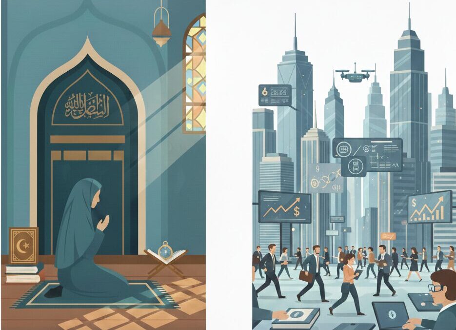 これに対し、社会学者の小室直樹氏は、イスラムには六信五行という具体的義務を果たすことで最後の審判を通過できるという、高い確実性を持つ救済の道筋があると指摘します。このため、西欧で見られた果てしない禁欲的労働と利潤追求は、イスラム世界では発生しません。